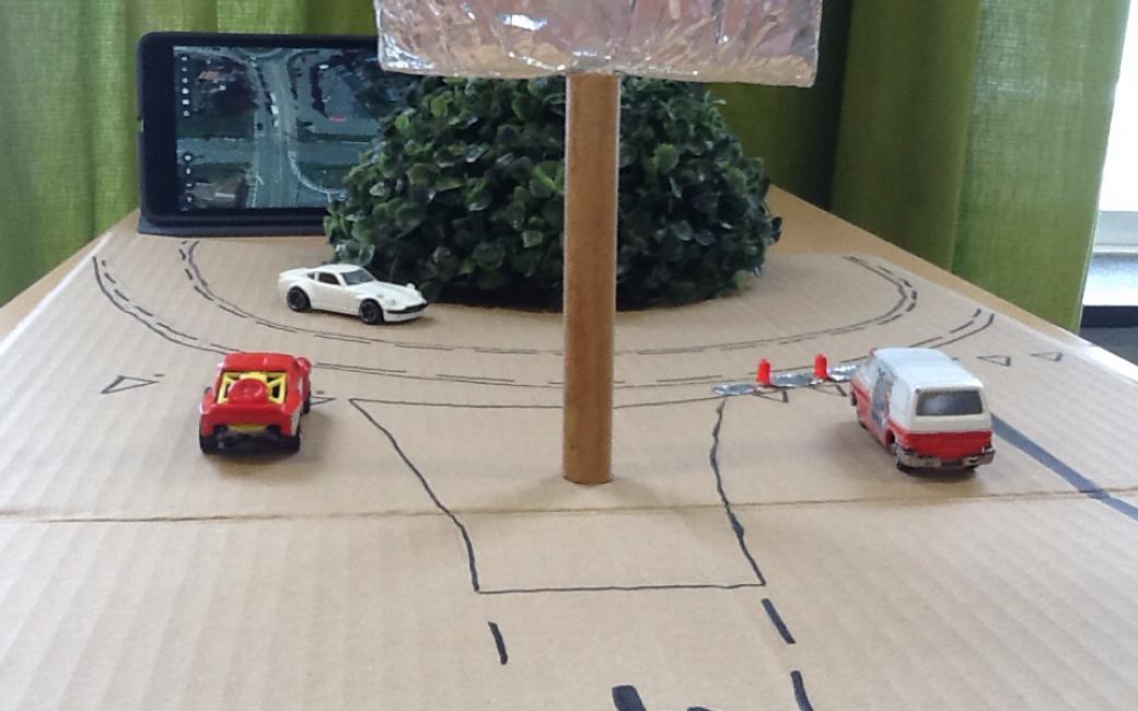 Leerlingen werken hun realisatie uit. Ze maken hierbij gebruik van een inspiratiemuur, waarop ze alle nuttige info schrijven die nodig is bij het schrijven van het programma. Dit kan op papier aan bv. een muur gehangen worden, maar ook de digitale tool 'padlet' kan hiervoor gebruikt worden. Ze verzamelen de nodige onderdelen voor het maken van de Arduino schakeling en tekenen hun geïntegreerde schakelaar uit. Ze bouwen de verkeerssituatie na zodat ze weten waar ze de schakelaar en de signalisatie moeten opstellen.