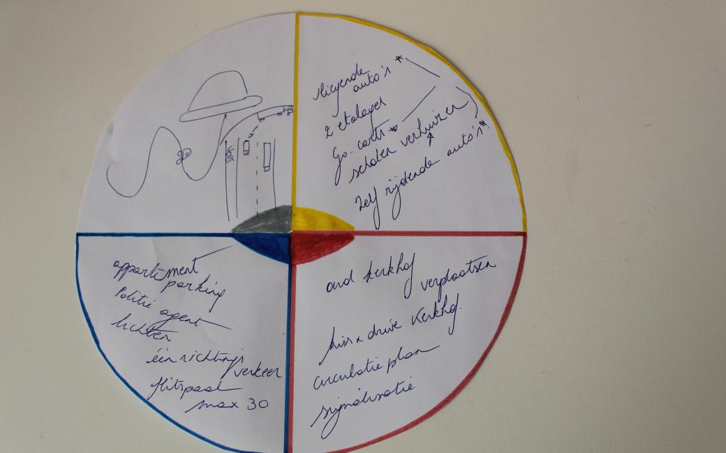 De leerlingen leggen een brainmap aan. Ze gebruiken kernwoorden zoals ' wat, wie, wanneer, waarom, hoe' en gaan gericht op zoek naar antwoorden door opnieuw ter plaatse te gaan, en door eventueel bij betrokken personen te vragen naar gevoelens en ervaringen. Alle gevonden informatie over het probleem wordt op deze brainmap gebundeld. De brainmap is een houvast wanneer het proces stilvalt. De leerlingen gaan vervolgens creatief ontwerpen bij het maken van een brainsketch.